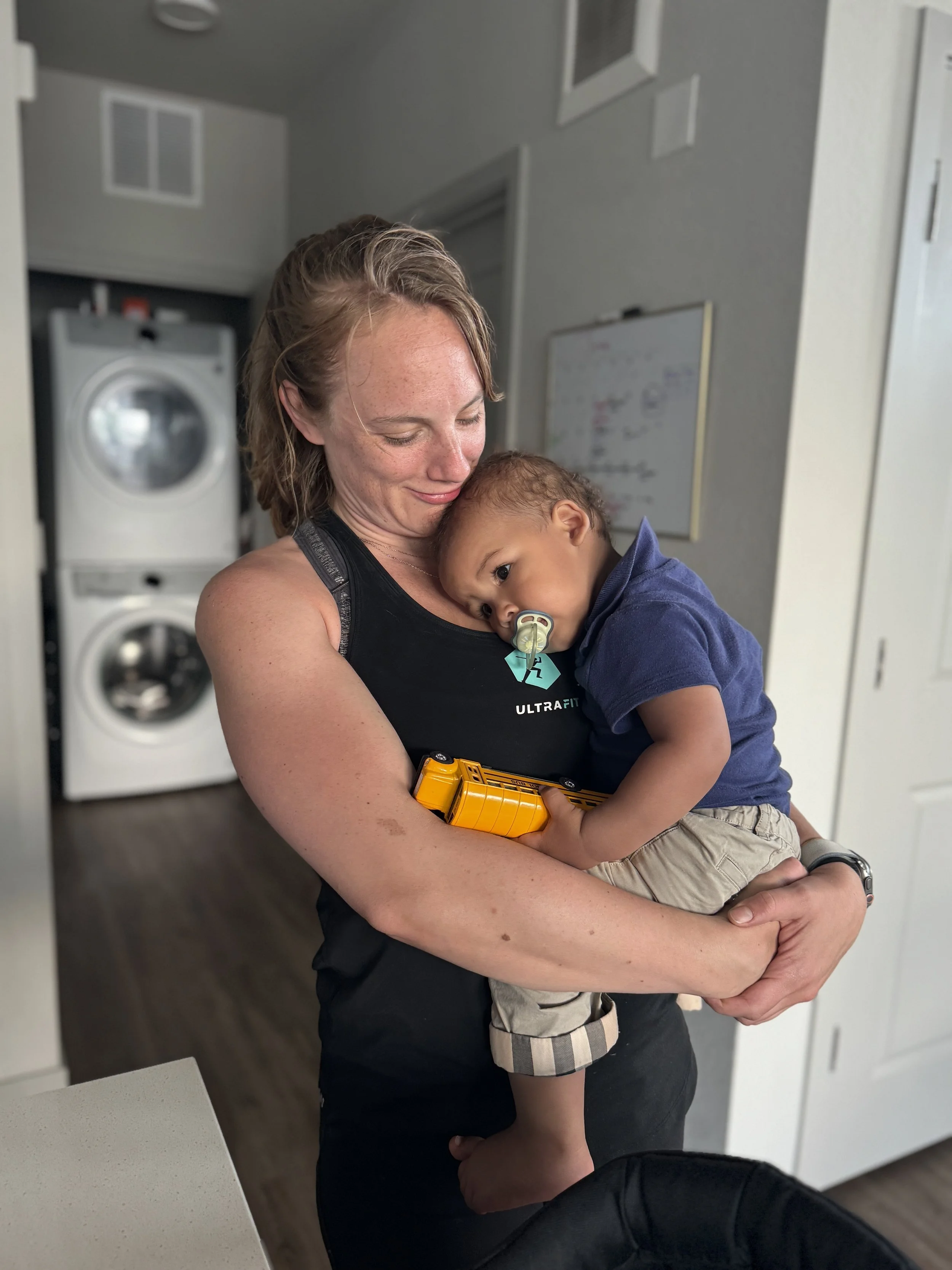 Shannon & Luca in thier kitchen right before nap time. 15 months postpartum.
