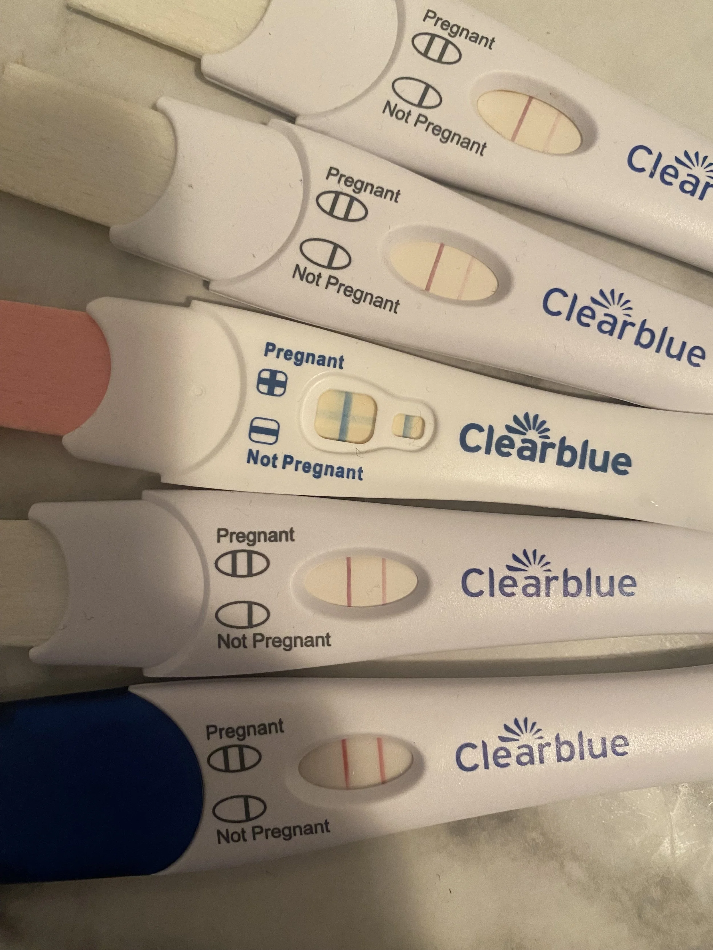 5 of the several pregnancy tests taken from Shannon.
